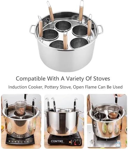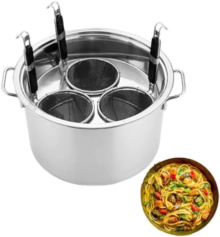 Experience the ultimate cooking convenience with our family-sized pasta cooker and steamer set, designed to simplify your meal preparation. This versatile kitchen essential is perfect for effortlessly cooking pasta, steaming vegetables, or preparing meat, making it a must-have for any home chef. Crafted from high-quality 201 stainless steel, this set not only boasts a sleek mirror finish for a classic aesthetic, but also ensures durability and professional cooking results. The aluminum encapsulated base heats quickly and distributes heat evenly, allowing you to achieve perfectly cooked noodles or steamed dishes every time. The innovative insert strainer basket makes draining pasta a breeze, while the cool grip handles ensure safety and comfort during use. This multipurpose set includes various sizes of filter baskets, catering to all your cooking needs. Whether you're hosting a family dinner or meal prepping for the week, this pasta pot adapts to your culinary requirements. With compatibility for induction, gas, electric, and glass ceramic cooktops, this kitchen utensil is designed to fit seamlessly into any cooking environment. The package includes a pasta pot, a pasta pan rack, a pot lid, and 3, 4, or 5 insert filter baskets, providing everything you need for a complete cooking experience. Elevate your cooking game and enjoy the convenience of our pasta cooker and steamer set. If for any reason you are not fully satisfied, please reach out to us for dedicated support. Discover the joy of effortless cooking today!