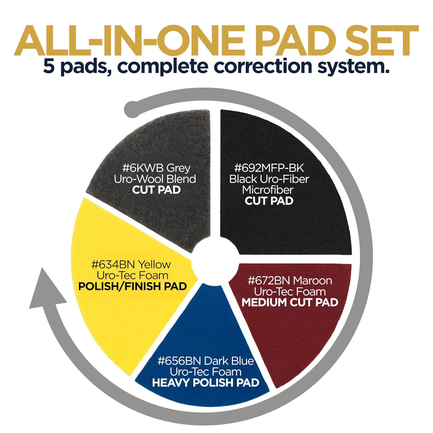 Upgrade Your Detailing Car Kit Designed for both professionals and car care enthusiasts, this 5-piece kit provides a complete set of car buffer pads to tackle every step of the polishing process, from heavy correction to fine finishing. Whether you are working with an orbital polisher or a gear-driven machine, these pads are engineered to deliver reliable, consistent performance. Durable Construction for Lasting Use: Each buffer pad is crafted from high-quality materials selected for their specific purpose. The wool pad helps remove heavy imperfections, the microfiber pad provides a smooth finish, and the foam pads balance performance for various polishing stages. Designed to withstand repeated use, they retain their performance and reliability over time. Fits 5-Inch Polishers: Optimized for use with 5-inch orbital and gear-driven polishers, these buffer pads attach securely and remain stable during operation. Their sizing is ideal for covering large vehicle panels efficiently while still offering control and maneuverability on smaller areas. Versatile for Automotive Buffer Surfaces: Whether you are correcting clear coats, enhancing gloss on single-stage paint, or refining a vehicle’s finish, this pad kit is versatile enough for a range of detailing tasks. It offers solutions for cutting, polishing, and finishing, ensuring you have the right pad for the job. Washable & Reusable: The pads are designed for easy cleaning, making them reusable and cost-effective. With proper care, they maintain their shape and function, providing long-term value and consistent performance for any detailing routine. Choose our Orbital or Gear Driven Pad Kit to enjoy a durable, versatile, and complete set of pads built to support all stages of your polishing process.